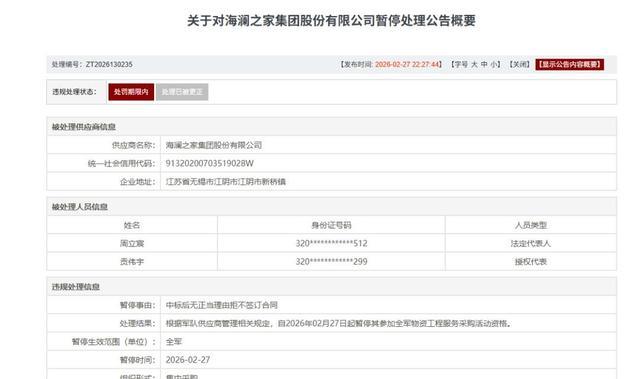 谁还记得2014年那句“一年逛两次海澜之家”?印小天在广告里甩胳膊扭肩膀,商场里蓝灰格子衬衫堆成山,结账时导购顺手塞进塑料袋的那张八折券,至今还夹在我家抽屉最底层。可就在2025年11月21日——它正式向港交所递表、准备冲刺“A+H”双上市的第37天,军队采购网挂出一条冷冰冰的公告:海澜之家集团股份有限公司,自2026年2月27日起,暂停参与全军所有物资、工程、服务类采购活动。理由就一行字:“中标后无正当理由拒不签订合同”。